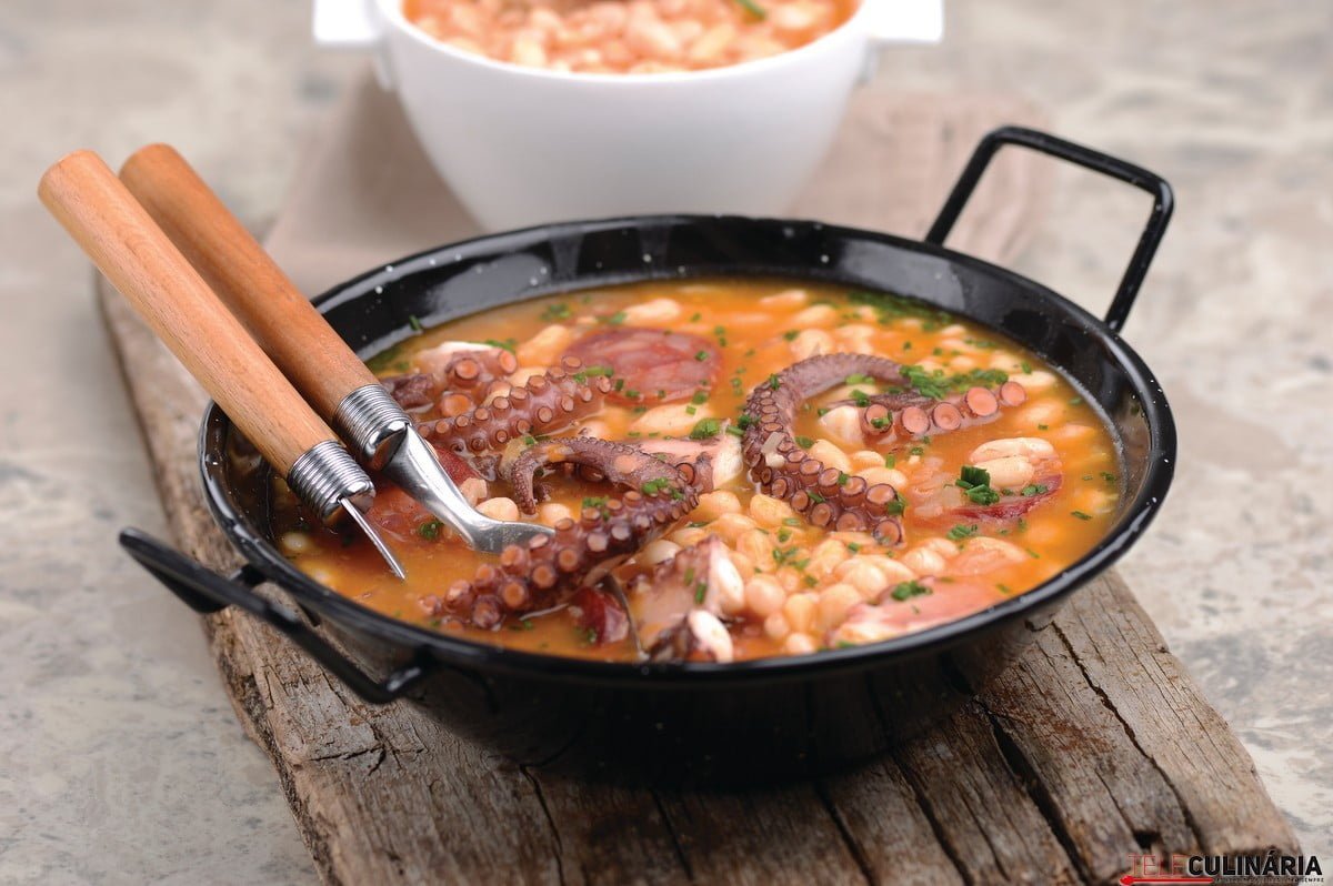 Começamos pela receita de polvo com feijão branco. Veja aqui a receita.